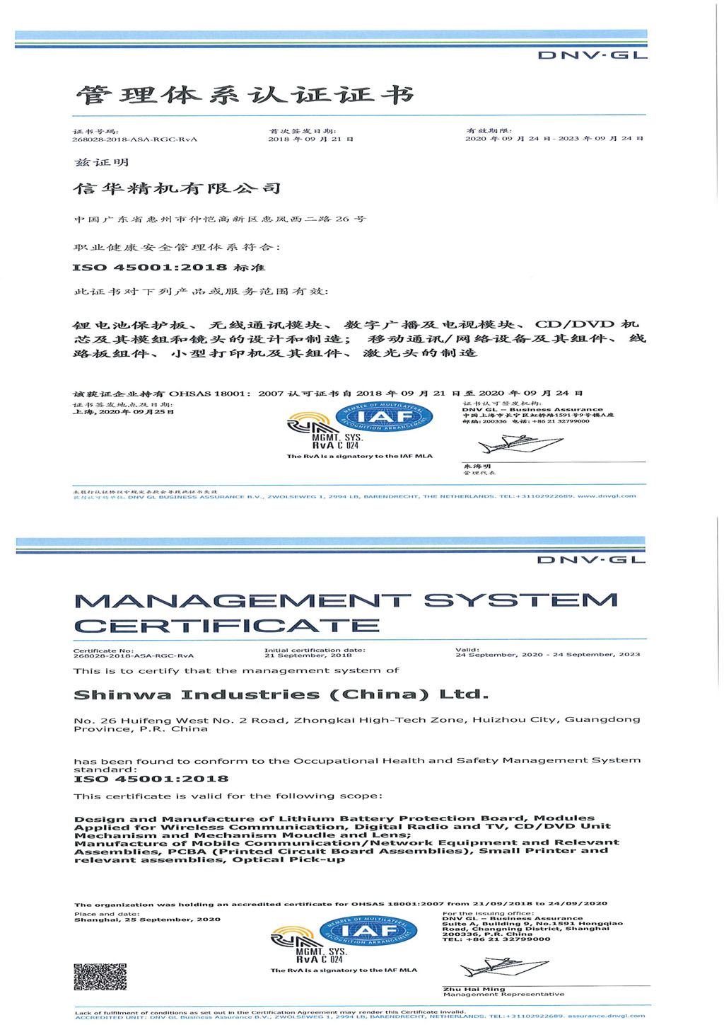 ISO45001 2018证书(2020-2023)