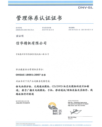 OHSAS18001 2007证书(2018)