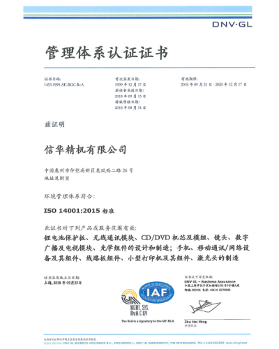 ISO14001 2015证书(2018)