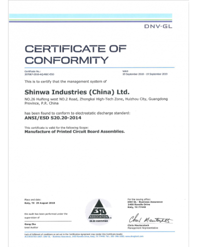 ESD S20.20-2014 平南证书(2018)