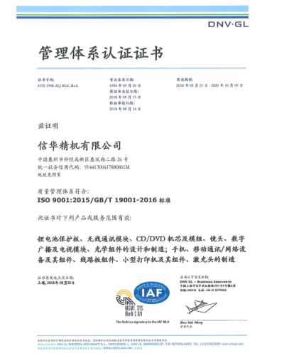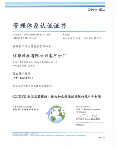 IATF16949_2016 惠河证书( 2018-2021 )